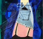 2001collage met foto's en textiel beschilderd met olieverf.
