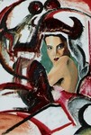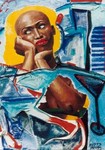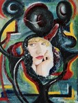 1995portret naar foto met collage en abstracte beschildering